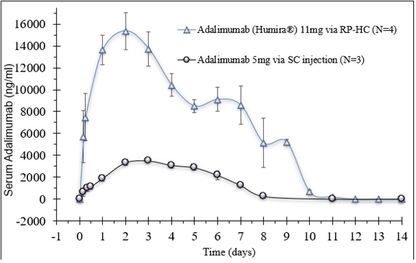 Adalimumab 11mg via RaniPill HC vs Adalimumab Biosimilar 5mg via Subcutaneous Injection
